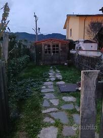 Cucina sala pranzo, salottino,camera matrimoniale, anti bagno e bagno.L'immobile ha il passaggio di entrata e una parte dietro dell immobile a comune . Giardino di proprietà con casetta di legno.