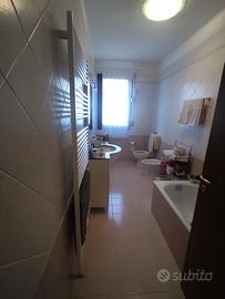 Ampio bagno ben arieggiato e illuminato con vasca da bagno;