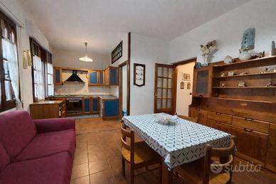 L'ingresso dell'abitazione si apre su un comodo disimpegno che distribuisce in modo funzionale tutti gli ambienti. La zona giorno è composta da una cucina-soggiorno luminosa, ideale come spazio conviviale e facilmente arredabile, con affaccio diretto sulla via.