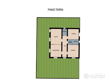 L'unità immobiliare al suo interno è composta da ingresso, soggiorno, cucina, due camere e due bagni.