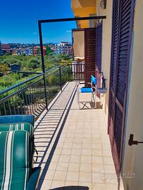 ripostiglio con autoclave. Aria condizionata nel soggiorno. E' dotato di ampio balcone vista mare di 20 mq, ideale per momenti di relax, completamente arredato (letti, divano letto, tavoli, sedie, mobili, televisione,