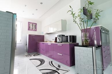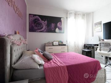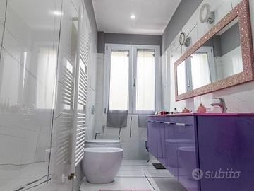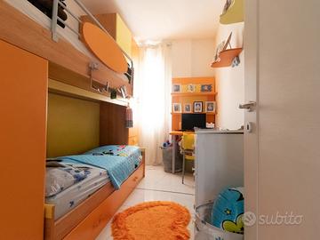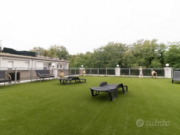Il terrazzo, che si affaccia sul verde, offre una vista gradevole e una sensazione di tranquillità rara da trovare in contesti così vicini alla città. Una parte è stata regolarmente chiusa e trasformata in un secondo soggiorno con cucina, creando un ambiente aggiuntivo versatile, perfetto come spazio conviviale o come estensione naturale della zona giorno principale.
