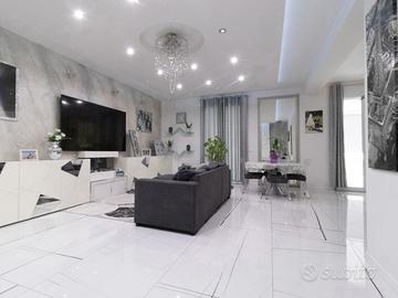 Si accede all'abitazione attraverso un ampio soggiorno, con la cucina leggermente defilata ma collegata, che garantisce funzionalità e continuità tra gli ambienti. Dal soggiorno si apre l'accesso a un terrazzo di circa 200 mq, che rappresenta un vero punto di forza dell'immobile: uno spazio ampio e fruibile, ideale per vivere l'esterno in ogni stagione.