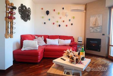 Completo di tutto: Cucina completa Scavolini, Tavolo da pranzo in legno massello, frigo, piano cottura, forno, lavatrice, asciugatrice, tv 70 pollici in sala pranzo, tv 60 pollici in camera da letto, tv 32 pollici in stanza ospiti, letti matrimoniali, divano, parete attrezzata, parquet, bagno completo di doccia con mosaico, sanitari e bidet, due cabine armadio, tre ampi balconi esterni che si affacciano sul giardino e campo sportivo con giostrine, climatizzatori, termosifoni, due caminetti a pellet...
