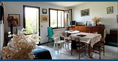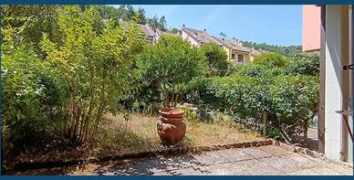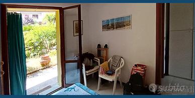ed un ampio giardino a cui si accede dalla porta finestra. Un piccolo disimpegno separa la zona notte