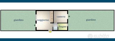 con la camera da letto dotata di portafinestra con accesso al secondo giardino,