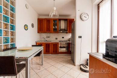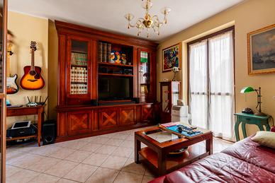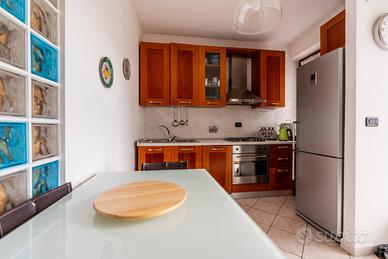 Sviluppato su unico livello, gli 85 mq di superficie sono ben distribuiti in planimetria, con l'ingresso sul disimpegno caratterizzato da una zona studio e le due aree abitative ben distinte; a sud troviamo la cucina abitabile dove la porta finestra con affaccio esterno consente l'ingresso di una bellissima luce naturale, rendendo accogliente e gradevole sia le viste sul verde che l'intero ambiente, la cui naturale estensione è il balcone che corre lungo l'ampiezza della stanza. Il soggiorno, permette di arredare l'ambiente con un comodo divano e di fronte una parete attrezzata TV, qui potrete passare il vostro tempo libero leggendo oppure visionando la vostra serie TV preferita.