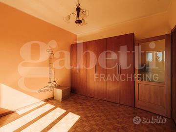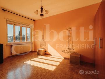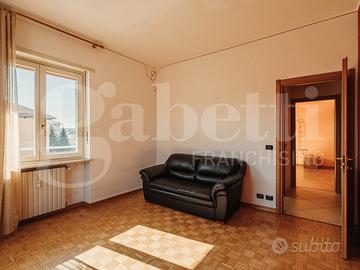 La zona notte, ben separata, ospita due camere matrimoniali. Una delle camere si affaccia su un ampio balcone angolare, esposto a sud-est, che consente di godere di una luce naturale che dura per tutta la giornata e offre una vista suggestiva sulla Cavallerizza Caprilli, sulla catena alpina e sul maestoso Monviso che si staglia all'orizzonte. Un panorama che dona valore all'ambiente e trasforma ogni momento nella zona notte in un'esperienza unica.