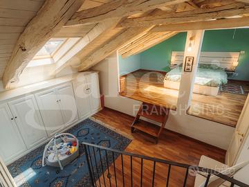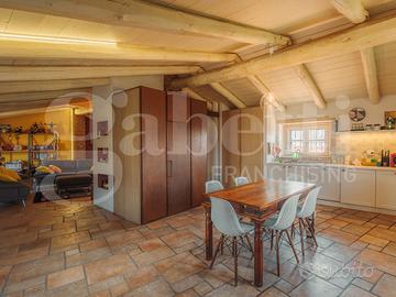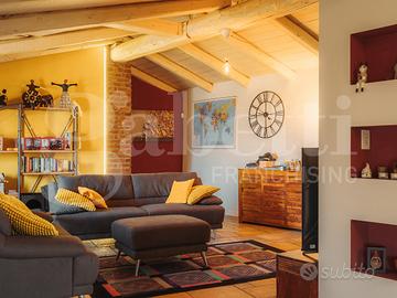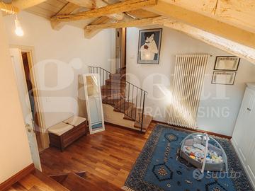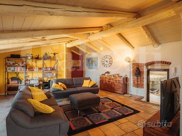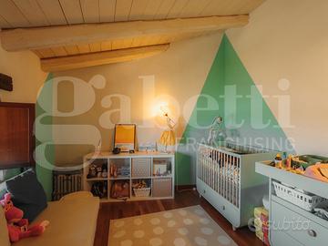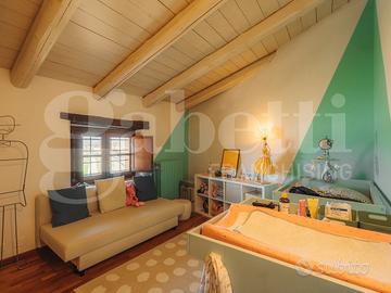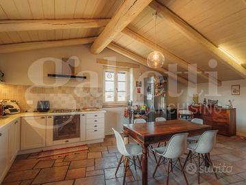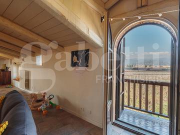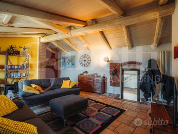 Qui, qualche anno fa, una giovane coppia ha trovato il proprio angolo di mondo, trasformando questa casa in un rifugio capace di accogliere e sorprendere. Il balconcino che si protende sui frutteti ne è il simbolo: un piccolo osservatorio privilegiato sulla natura, un angolo da cui lasciarsi avvolgere dal paesaggio e dai suoni della campagna.