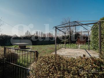 Dalla grande finestra, lo sguardo si perde nel verde del giardino, creando un legame spontaneo tra interno ed esterno. È facile immaginare una mattina lenta, con il profumo del caffè che si mescola all'aria fresca, o una serata in compagnia, con il crepitio di una candela che illumina il tavolo mentre