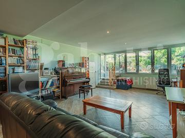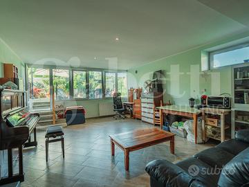 Il piano terreno accoglie un giardino privato (non collegato direttamente con l'unità immobiliare) che dialoga con una depandance dotata di bagno e predisposizione per una cucina: uno spazio polifunzionale, perfetto come cucina estiva ,tavernetta, studio per smart working, ambiente per il tempo libero o per ospitare con comodità. Un'estensione concreta della casa, dove la vita all'aperto si fonde con quella domestica.