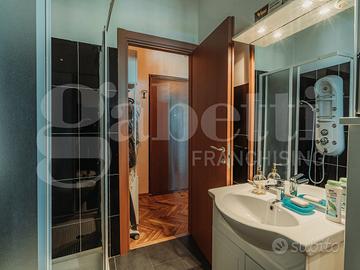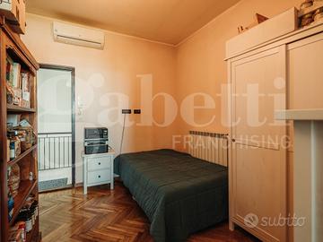 Un elemento di grande valore è la possibilità di accedere al primo piano sia internamente dalla scala che lo collega al piano rialzato, sia direttamente dal vano scala del caseggiato, offrendo maggiore praticità e indipendenza nella gestione degli spazi.