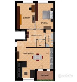 Il comfort è ulteriormente valorizzato dai serramenti in PVC bianco con doppio vetro e taglio termico, dalle eleganti porte interne in legno e dal climatizzatore nel soggiorno, che insieme garantiscono benessere, silenzio e praticità quotidiana.