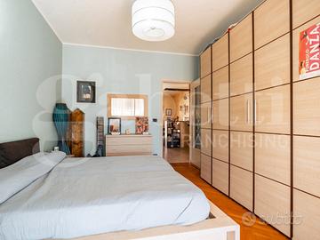 La palazzina è servita da ascensore e, con il tetto completamente rifatto, libera da ogni pensiero legato alla manutenzione straordinaria. L'appartamento di 90 mq. commerciali offre doppia esposizione e si sviluppa con un layout classico anni '60: ingresso su corridoio, tinello con cucinino, due camere matrimoniali,con parquet in legno,affacciate sulla balconata ovest, bagno e capiente ripostiglio.