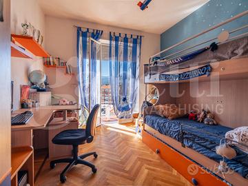 La balconata ovest è attrezzata con tende da sole automatizzate e le tapparelle elettriche garantiscono comfort e praticità quotidiana. La zona giorno ha visto un aggiornamento mirato dei pavimenti, mentre l'impianto elettrico è stato rifatto dagli attuali proprietari subito dopo l'acquisto, assicurando sicurezza, funzionalità e adeguamento agli standard moderni senza alterare il fascino originale degli ambienti.