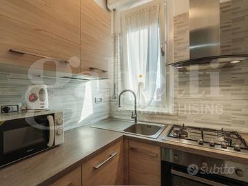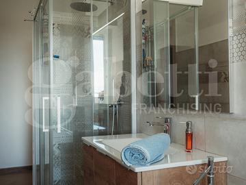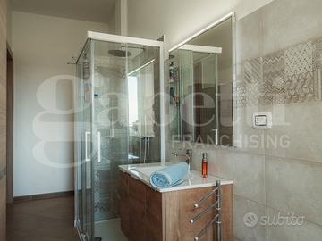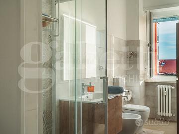 Infissi di qualità e molto recenti offrono un comfort termo acustico davvero notevole, porte dal design lineare con cerniera a scomparsa e riscaldamento semiautonomo completano la soluzione. Terrazzino con vista collina San Maurizio.