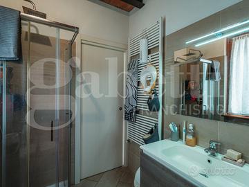 C'è qualcosa di speciale nelle case che sanno accoglierti al primo sguardo... e questa è una di quelle. Alle porte della città, in un contesto residenziale riservato ed esclusivo, questo appartamento è il punto d'incontro perfetto tra comodità e respiro. Il centro è a pochi minuti, ma alle tue spalle si apre il verde: uno sfondo silenzioso che cambia ritmo alle tue giornate. Appena varchi l'ingresso indipendente al piano terra, senti subito quella sensazione rara: libertà. Nessun pianerottolo condiviso, nessun compromesso. Solo il tuo spazio, il tuo ritmo, la tua storia che inizia. Al primo piano a cui arrivi tramite una caratteristica scala in pietra, ti accoglie una zona giorno luminosa e moderna, dove il soggiorno con angolo cottura diventa il cuore pulsante della casa: perfetto per cene improvvisate, risate tra amici o semplicemente per godersi un momento di quiete dopo una giornata intensa. Le travi a vista aggiungono carattere e calore, mentre la luce naturale scivola delicata dai balconi, rendendo ogni angolo vivo. La zona notte è pensata per accompagnare ogni fase della vita: due camere da letto, ideali per una coppia che sogna in grande, per chi lavora da casa o per una famiglia che sta appena sbocciando. Il bagno è curato e funzionale con un angolo nascosto dedicato alla lavanderia. E poi due balconi: piccoli rifugi all'aperto dove respirare, leggere, o semplicemente fermarsi un attimo. A completare il tutto, una cantina e un posto auto interno cortile: una comodità che, una volta provata, diventa irrinunciabile. Dotazioni che fanno la differenza: Riscaldamento autonomo, Doppi vetri, Climatizzatore, Porta blindata, Videocitofono, Condizioni pari al nuovo. CLASSE ENERGETICA A2 La posizione? Una di quelle che ti semplificano la vita: in zona residenziale tranquilla, appena fuori dal centro, ma con tutti i servizi e i collegamenti a portata di mano. Il perfetto equilibrio tra serenità e praticità. Perfetto per: giovani single dinami