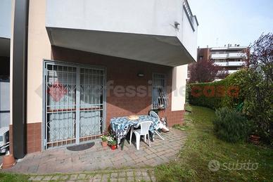 PIOLTELLO VIA MANTEGNA. In contesto ben curato e abitato proponiamo in esclusiva due locali posto al piano terra con giardino e cantina. Una volta all'interno si è accolti da un incantevole soggiorno, fin da subito colpisce l'abbondanza di luce che entra dalla grande portafinestra che dal soggiorno conduce al giardino, proseguendo nella zona giorno troviamo una cucina semi abitabile, sapientemente collocata e separata dotata anch'essa da una portafinestra con accesso alla zona esterna. Procedendo attraverso un pratico disimpegno passiamo al reparto notte, dove hanno spazio una camera matrimoniale di ampia metratura con uscita sul giardino, un funzionale e prezioso ripostiglio e per finire un bagno padronale finestrato. L'immobile è tenuto in modo eccellente, dotato di caldaia a condensazione, grate di sicurezza in tutte le finestre, predisposizione condizionatore e allarme. Il vero punto di forza è lo spazio esterno, un giardino angolare pianeggiante, ben sfruttabile e collegato direttamente agli ambienti principali della casa, perfetto per momenti di relax all'aperto, pranzi e cene in compagnia o per chi possiede animali domestici. La doppia esposizione sud-est garantisce una luminosità naturale costante e un'ottima ventilazione in tutti gli ambienti. Risulta essere un'ottima proposta per chi desidera un appartamento già pronto da vivere e che coniughi gusto estetico con ottimi comfort abitativi. Per scoprire le potenzialità di questo immobile è possibile fissare un appuntamento contattando i numeri: -