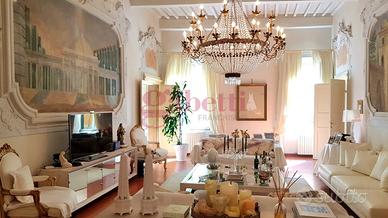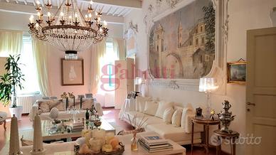 SANT'ANTONIO: Suggestivo e sontuoso appartamento con finiture d'epoca quali stucchi originali del 1600 ed affreschi del 1700, posto al piano nobile di palazzo storico nel centro della città. L'immobile, di ampia metratura, internamente si compone di ampio ingresso tradizionale dal quale si può accedere alla sala da pranzo e all'ampio salone di rappresentanza con soffitti di 4,50mt ed affreschi. Dalla sala da pranzo ci spostiamo alla cucina abitabile con dispensa ed un comodo terrazzino abitabile; la zona notte si compone di un disimpegno, tre camere da letto matrimoniali di cui una con bagno privato ed un altro bagno. Completa la proprietà una comoda cantina di 25mq al piano terreno con accesso diretto dalla strada.