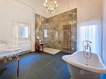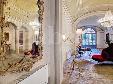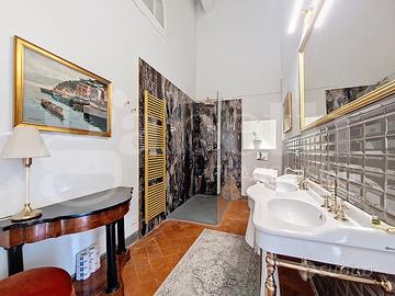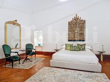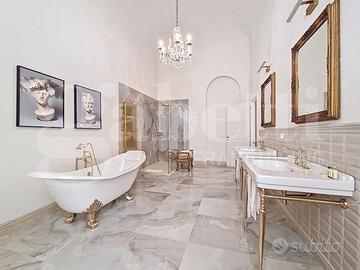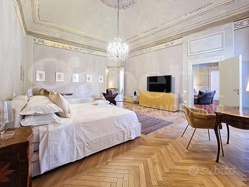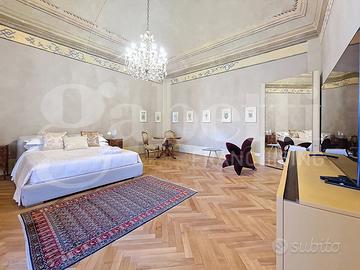 CENTRO STORICO - Nel pieno centro storico di Pisa, a breve distanza dall'Arno e dalla Torre Pendente, si trova questa residenza di grande fascino, ricca di storia e carattere. L'edificio nasce come casa-torre nel XII secolo e, nel corso del tempo, è stato trasformato in un'elegante dimora nobiliare, impreziosita da affreschi realizzati da artisti locali tra il XVI e il XIX secolo. Oggi conserva intatto il suo fascino d'epoca, unito a un'atmosfera raffinata e suggestiva. Gli ambienti accolgono con spazi ampi e scenografici: colpiscono i pavimenti in pietra, gli arredi caldi e ricercati, gli specchi decorativi e i dettagli di design contemporaneo. Le volte decorate e gli elementi in stucco donano armonia agli spazi, mentre l'illuminazione valorizza ogni ambiente creando un equilibrio tra eleganza e comfort. La proprietà riguarda il piano nobile del palazzo per complessivi 450mq e si sviluppa al piano primo di quattro livelli collegati da una scenografica scala in pietra, arricchita da ferro battuto e legno lavorato, illuminata dall'alto da una grande apertura che diffonde luce naturale. Grazie alla doppia esposizione, gli ambienti risultano luminosi e ariosi. Attualmente sono presenti quattro suite di ampia metratura, restaurate con attenzione e gusto, dove materiali originali e dettagli storici si combinano con soluzioni più contemporanee. Ogni suite è dotata di bagno privato rifinito con marmi pregiati, finiture eleganti e arredi distintivi. Sono ancora presenti i camini storici, mentre i pavimenti alternano cotto originale, cementine decorative e parquet posato a spina di pesce, offrendo varietà e carattere a ogni ambiente. Gran parte delle opere strutturali è già stata eseguita e sono state predisposte le installazioni per impianti moderni, inclusa la climatizzazione. Un piccola porzione del piano consente di completare i lavori adattando spazi e finiture alle esigenze del futuro acquirente. Completa la proprietà un cortile interno priv