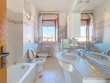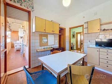 CEP: Al quinto ed ultimo piano con ascensore di buon condominio proponiamo appartamento di ampia metratura corredato da comodo garage. Ci accoglie un comodo ingresso tradizionale che ben separa l'ampio e luminoso soggiorno con balcone dalla cucina corredata anche essa da altro balcone. Il disimpegno notte è bel separato dalla zona giorno e conduce alle tre ampie camere e ai doppi servizi entrambi con finestra. Completa la proprietà un garage al piano terra. Buono stato di manutenzione. Impianto di condizionamento.