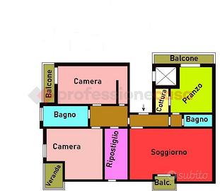 Con i suoi 130mq circa, è composto da ingresso, soggiorno doppio con balcone, cucina abitabile con balcone di servizio e ripostiglio esterno, disimpegno notte, 2 camere, una verandata e l'altra con balcone, 2 bagni finestrati, ulteriore ripostiglio.