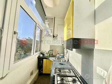 L'appartamento, con i suoi 85mq circa, è luminoso ed arioso grazie alla doppia esposizione parallela sud - nord ed è composto da ingresso tradizionale, soggiorno (attuale terza camera), cucina con balcone verandato, 2 camere di cui una con balcone e bagno finestrato con doccia.