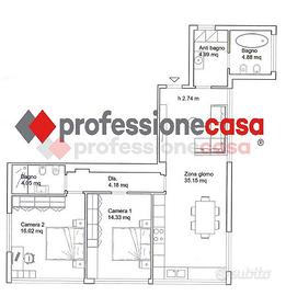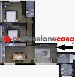 E' composto da ingresso in luminoso living caratterizzato da ampie superfici finestrate di 35mq con angolo cottura, disimpegno notte, camera matrimoniale, camera doppia, ampio bagno/lavanderia finestrato con doccia, ulteriore bagno con doccia walk in ed utile ripostiglio.