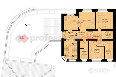 L'appartamento n.4 è un quadrilocale di 137 mq circa, con 3 camere da letto, una impagabile terrazza di 113mq circa in pieno centro storico, cantina e posto auto.