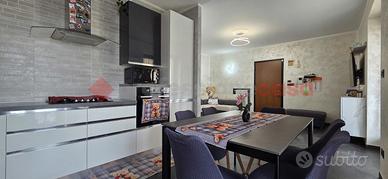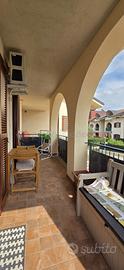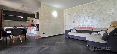 A soli 500 metri dal centro Paese, nel complesso "Le Ninfee", all'interno di un villaggio residenziale costruito nel 2010, proponiamo luminoso appartamento posto al primo piano dotato di ascensore. L'abitazione sviluppa una superficie complessiva di circa 90 mq, ed è così composta: ingresso living su soggiorno con cucina a vista, entrambi con uscita su terrazzino, disimpegno, camera matrimoniale con cabina armadio, cameretta, lavanderia e bagno con uscita sul terrazzino. L'appartamento in classe energetica B gode dei seguenti comfort: riscaldamento a metano, infissi in legno con doppi vetri, zanzariere, impianto di climatizzazione, portoncino blindato e video-citofono. Completa la proprietà la cantina. NESSUN LAVORO DA EFFETTUARE - OTTIME FINITURE. Possibilità di acquisto di box auto doppio a parte ad € 18.000. È possibile visionare l'immobile senza impegno contattando il numero 011/905.97.36.