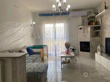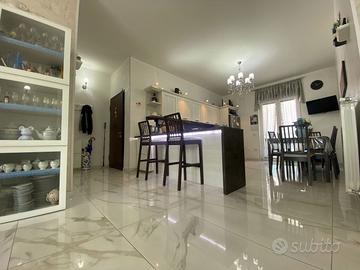 L'immobile è ad un terzo piano con ascensore in un fabbricato in cemento armato ed è composto da: ingresso con cappottiera, cucina abitabile con balcone e ripostiglio, ampio salone con camino ed ambio balcone con affaccio lato stazione, ampio corridoio che conduce alla zona notte suddivisa in tre camere di cui, una matrimoniale con ampio bagno in camera. La zona notte si completa con un ulteriore bagno a servizio degli ambienti.