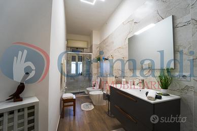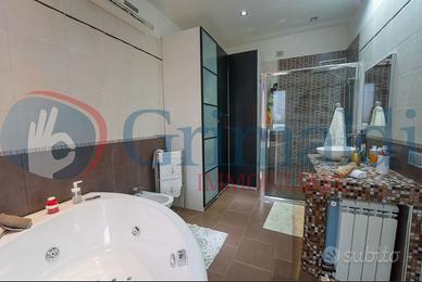 La zona notte, separata dalla zona giorno da due pratici disimpegni, ti sorprenderà con due enormi camere da letto, tutte soleggiate e ventilate. La camera matrimoniale è un vero gioiello, dotata di un elegante bagno privato con doppia funzionalità, tra cui una lussuosa vasca angolare idromassaggio e un box doccia separato,