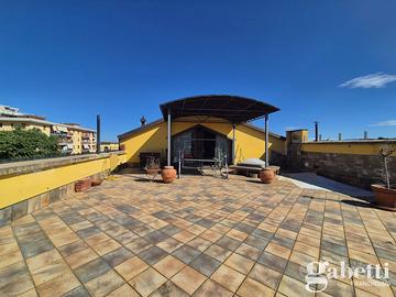 L'immobile si sviluppa su due livelli, con appartamendo di 240 mq al primo piano, composto da 6 vani + 3 acc.ri e mansarda di 150 mq al piano superiore composta da 4 vanni + acc.ri, collegata internamente e dotata di accesso diretto al terrazzo a livello di 100 mq, ideale per momenti di relax all'aria aperta e per vivere gli spazi esterni in totale privacy.
