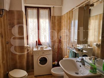 L'appartamento, un comodo piano terra, misura circa 91 mq, ed è così composto: ampio ingresso che conduce alla zona giorno e alla cucina abitabile entrambe con affaccio sul balcone, il disimpegno porta alla zona notte, dove troviamo due camere spaziose, anch'esse con accesso sul balcone, infine un bagno con vasca e doccia.