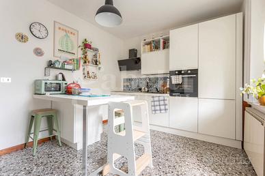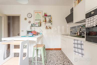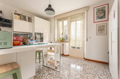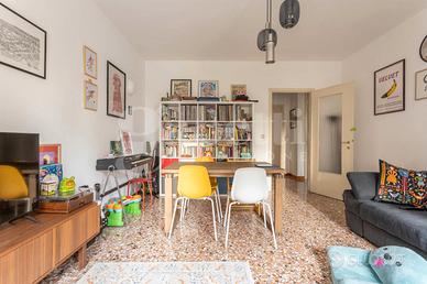 Rif. 807 AMPIO BICAMERE - GENEROSE METRATURE - Zona OSPEDALE. Posizionato in tranquilla laterale in fabbricato condominiale di poche unità abitative, offriamo al piano rialzato splendida opportunità immobiliare. Le dimensioni dell'immobile, la disposizione nello spazio ed il contesto sono quelle di un epoca edilizia che non badava a qualità dimensionali e comfort abitativo. L'ingresso generoso accoglie in un ambiente caratterizzato dal seminato veneziano su tutta la zona giorno. L'ampio generoso soggiorno dal doppio volume ospita comodamente zona relax e zona pranzo. La cucina separata è abitabile e apre al comodo poggiolo. Un disbrigo tecnico è comodo sfogo al living quotidiano. La zona notte vede due comode e generose matrimoniali servite da bagno con vasca. Dotata di condizionatore e caldaia di appena due anni di installazione, l'immobile ha due eccellenti sfoghi ad uso cantina nel seminterrato comune e a soffitta al terzo piano. Posto auto sotto tendalino in area comune. Cerchi il tuo nuovo progetto di CAMBIO CASA? Chiamaci!