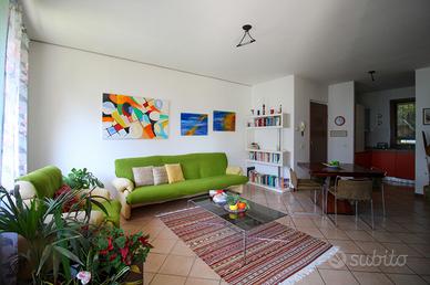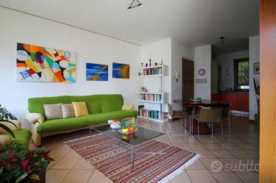 L'appartamento, dotato anche di box, posto auto privato, cantina/lavanderia e giardino meticolosamente curato, è così strutturato: in entrata soggiorno con cucina a vista, disimpegno, due camere da letto e bagno finestrato con doccia. Tutti gli ambienti, eccetto i servizi, hanno accesso diretto al giardino piantumato che offre anche zone in ombra ove ripararsi dalla calura estiva in totale relax.