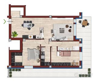L'Immobiliare Unika propone in esclusiva di vendita nel Comune di Porto San Giorgio (FM), in prima fila mare in zona Sud, appartamento di circa 100,92 mq di nuova realizzazione posto al piano primo con balcone e terrazzo perimetrale di circa 34,12 mq a servizio della zona giorno e della zona notte, per una superficie totale commerciale pari a 117,98 mq. Appartamento servito da ascensore. L'immobile si compone di ingresso su ampio ed elegante soggiorno cucina open space, con accesso diretto esterno su balcone abitabile posto a Sud, disimpegno notte che comprende una camera matrimoniale con cabina armadio e balcone, comodo e utile ripostiglio-lavanderia, seconda camera doppia con accesso diretto al balcone e bagno con finestra. Completa la proprietà posto auto nella corte condominiale esclusiva. Possibilità di cantina. Consegna prevista per fine anno 2025. La soluzione abitativa sarà realizzata secondo le ultime tecnologie costruttive, con lo scopo di ottenere un'elevata qualità tecnologica e un alto livello di confort, con particolare attenzione alle materie prime selezionate e alle finiture. Possibilità di personalizzazione degli ambienti interni secondo le esigenze del cliente, tramite la consulenza diretta di professionisti qualificati in sede. Opportunità irripetibile, per chi è in cerca di un prodotto innovativo, volto ad ottenere un forte risparmio energetico ed inserito in un contesto altamente esclusivo e riservato, fronte mare. Il nostro studio è a vostra disposizione per fornirvi ulteriori informazioni e dettagli. Classe energetica prevista "A+++". RIF.VV376. Immobiliare Unika -