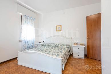 Il disimpegno della zona notte suddivide un'ampia camera matrimoniale arricchita da un terrazzino intimo con affaccio sul verde condominiale, una camera singola ed un bagno appena ristrutturato con gusto moderno.