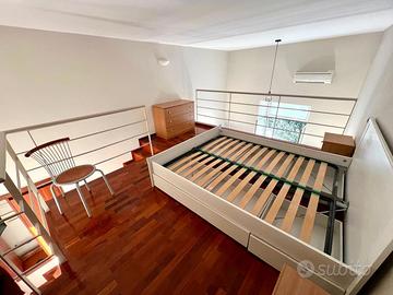 soggiorno, cucinotto camera da letto soppalcata e servizio