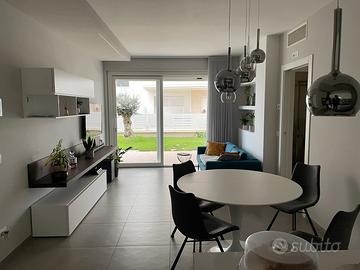 In palazzina di recente costruzione, nel pieno centro di Porto Sant'Elpidio, in posizione esclusiva dietro la stazione ferroviaria e direttamente in prima fila mare, proponiamo in vendita splendido appartamento con giardino privato vista mare, completamente arredato con finiture di lusso.