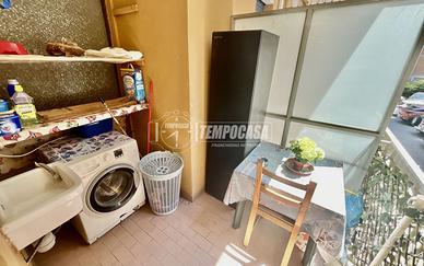 L'appartamento ci accoglie nell'ampio ingresso, che ci accompagna al soggiorno/cucina, nel giusto connubio tra open space e ambienti divisi. La zona giorno è caratterizzata dall'ampia luminosità, data dall'esposizione a sud e dalle molteplici finestre e il doppio accesso ai balconi, che ne sono due, di cui uno più riparato, adibito anche ad angolo lavanderia, e un altro che sviluppa più in lunghezza. La zona notte invece è composto da due camere, ambedue matrimoniali, due bagni di cui uno attualmente adibito a ripostiglio, e un comodo ripostiglio. Inoltre nell' area condominiale si può parcheggiare, perchè c'è il posteggio libero per i condomini.