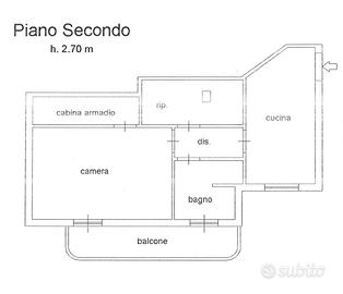 In condominio servito da ascensore è composto da ingresso sulla cucina, disimpegno, bagno, ripostiglio, ampia camera matrimoniale e balcone.