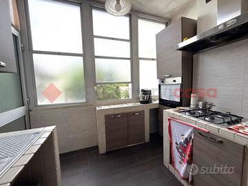 L'appartamento si compone su due livelli. Il piano terra offre un ampio soggiorno con camino, cucinino collegato al deposito che porta al giardino, camera da letto e bagno; il primo offre tre camere da letto spaziose e bagno.