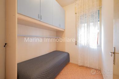 Scopri un'eccezionale opportunità di acquisto nel cuore di Jesolo, precisamente nella rinomata zona di Piazza Marina. Proponiamo in vendita un ampio appartamento quadrilocale situato al secondo piano (con ascensore) all'interno di un contesto residenziale esclusivo e raccolto, a pochi passi dalle splendide spiagge che caratterizzano questa vivace località. L'immobile si estende su una superficie generosa di 90 mq ed è così composto: un luminoso soggiorno che si apre su un terrazzo abitabile, dove potrai godere di una vista mare laterale incantevole - perfetta per pranzi e cene all'aperto con amici e familiari. La cucina è separata da eleganti porte scorrevoli in vetro e offre comodità nell'organizzazione quotidiana dei pasti. Le camere sono quattro in totale; due spaziose camere matrimoniali garantiscono il massimo del comfort alla famiglia o agli ospiti, la cameretta è comoda , inoltre la quarta stanza può essere utilizzata come stanza dei giochi o studio. Completano l'appartamento anche uno bagno finestrato ben arredato ed un comodo bagnetto di servizio. In aggiunta alle ottime caratteristiche interne dell'immobile, troverai aria condizionata per affrontare le calde giornate estive ed essenziale posto auto privato coperto - rarissimo nei dintorni! Per gli amanti del mare sarete felici di sapere che avrete accesso ad una spiaggietta privata riservata ai residenti. Questo fantastico appartamento non rappresenta solo una casa al mare ma anche un'opportunità d'investimento eccezionale grazie alla sua posizione strategica tra le famose Piazze Marina e Nember. Potrai facilmente raggiungere bar, ristoranti e negozi della zona senza necessitare dell'auto! Non perdere l'occasione unica di entrare nel tuo angolo personale sul lungomare! Contatta subito la nostra agenzia per maggiori informazioni o per fissare una visita. Riferimento: M 039 C.E.: G