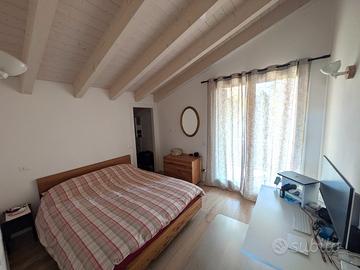 Appartamento duplex quadrilocale con terrazzo, balcone, garage privato, piscina e giardino condominiale. Posizionato in residence moderno (del 2016) a Peschiera del Garda (VR), con grande piscina e giardino condominiale. Su una superficie commerciale di circa 110 mq, di sviluppa al primo e secondo e ultimo piano. Il primo livello, con superficie commerciale di 55 mq, ospita: - una luminosa zona giorno (living) con accesso diretto a un terrazzo vivibile di 15 mq ideale per pranzi all'aperto; - una cucina separata (trasformabile in una ulteriore camera da letto); - un bagno finestrato con zona lavanderia. Una comoda ed elegante scala in legno conduce al piano superiore (superficie commerciale 57 mq), completamente vivibile in altezza e con travi a vista sbiancati, dove troviamo la zona notte composta da: - una camera matrimoniale con cabina armadio e balcone privato di 6 mq, - una seconda camera, - un secondo bagno finestrato. L'immobile è rifinito con materiali moderni, parquet di rovere sbiancato in tutto l'appartamento (ad eccezione del bagno lavanderia). È dotato di riscaldamento autonomo a pavimento, aria condizionata (separata per piano), sistema d'allarme perimetrale e volumetrico. L'appartamento viene venduto insieme ad un garage privato di 18 mq e parcheggi condominiali. La posizione è tranquilla e residenziale, comoda ai servizi principali (quali stazione ferroviaria e autostrada), centro storico (raggiungibile a piedi in meno di 10 minuti) e al lungolago, anch'esso raggiungibile in pochi minuti a piedi. Una soluzione ideale come prima casa, residenza vacanza o investimento di qualità.