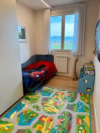 Privato vende nella migliore zona residenziale di Quarrata, in posizione rialzata immersa nel verde ma a pochi passi dal centro e dai servizi, luminoso appartamento in piccolo e signorile contesto condominiale. L'appartamento si trova al primo ed ultimo piano ed è composto da zona giorno con ingresso, soggiorno e cucina di design a vista con penisola, terrazzo. Disimpegno con due ampi mobili angolari su misura. Zona notte con camera matrimoniale con secondo terrazzo, seconda camera singola e bagno finestrato con doccia. Dalle scale in legno presenti in soggiorno inoltre si accede a mansarda totalmente abitabile (h 190/250) adibita attualmente a salotto, bagno finestrato con velux e ampio ripostiglio sottotetto. Completano la proprietà un garage di circa 19 mq e posto auto privato. Immobile ristrutturato nel 2015 con finiture di grande pregio, parquet, aria condizionata, sistema di allarme, zanzariere, tenda solare elettrica, Internet con fibra. NO AGENZIE.