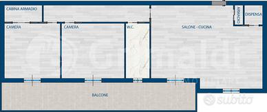 L'immobile si compone di un ampio ambiente salone/cucina, due camere da letto, bagno con vasca angolare e ampio balcone, che garantisce ottima luminosità agli ambienti.