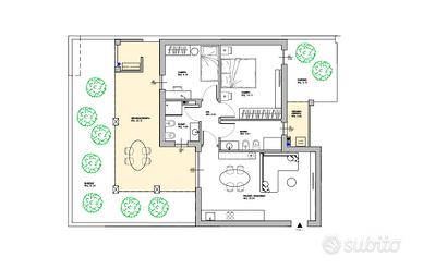 L'appartamento si apre su un luminoso soggiorno con angolo cottura, cuore pulsante della casa, da cui si accede a una veranda coperta di 25 mq che serve sia la zona giorno che la zona notte. Uno spazio ideale da vivere tutto l'anno, perfetto per momenti di relax o convivialità. La veranda si apre poi su un giardinetto privato di circa 30 mq, un'oasi di verde esclusiva dove respirare tranquillità e creare un piccolo angolo naturale da personalizzare.