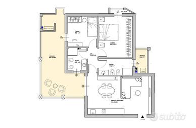 Il trivano che vi proponiamo si apre su un ampio soggiorno con angolo cottura, cuore della casa, dove vivere i momenti quotidiani in un ambiente arioso e accogliente. Da qui si accede alla grande protagonista dell'abitazione: una veranda coperta di 30 mq, uno spazio che diventa naturale estensione della zona giorno e della zona notte, perfetto per pranzi e cene all'aperto, ma anche per creare un angolo relax da godere in ogni stagione.
