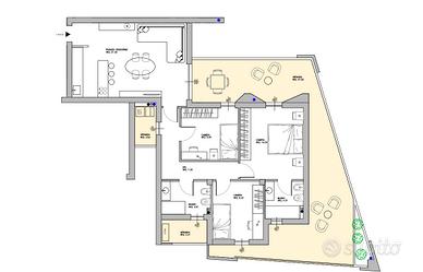 La zona notte è pensata per garantire comfort e funzionalità: una camera matrimoniale spaziosa, ideale come rifugio privato, due camere singole luminose e versatili, perfette come camere per i più piccoli, studio o stanza degli ospiti. A completare la distribuzione interna, due bagni moderni e personalizzabili, di cui uno servito da balcone con angolo lavanderia.